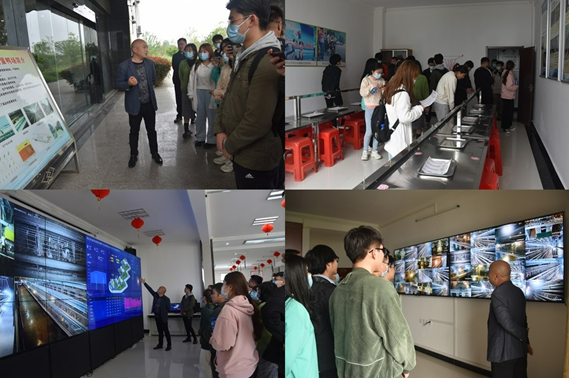 随后,华农师生一行到公司蛋鸡场参观标准化蛋鸡养殖场,王鹏场长向同学们介绍本场布局、栋舍设计、料塔和生蛋传送带、粪污处理方式,观看在线监控并讲解栋舍内部情况,还带领大家参观集蛋区,了解集蛋、洗蛋等实际工作流程。最后,员工们到公司蛋鸭场参观了畜禽养殖数字农业建设试点项目,由吴勇场长介绍蛋鸭场的综合信息平台、蛋鸭无水笼养模式等蛋禽业的最新智慧养殖技术。
