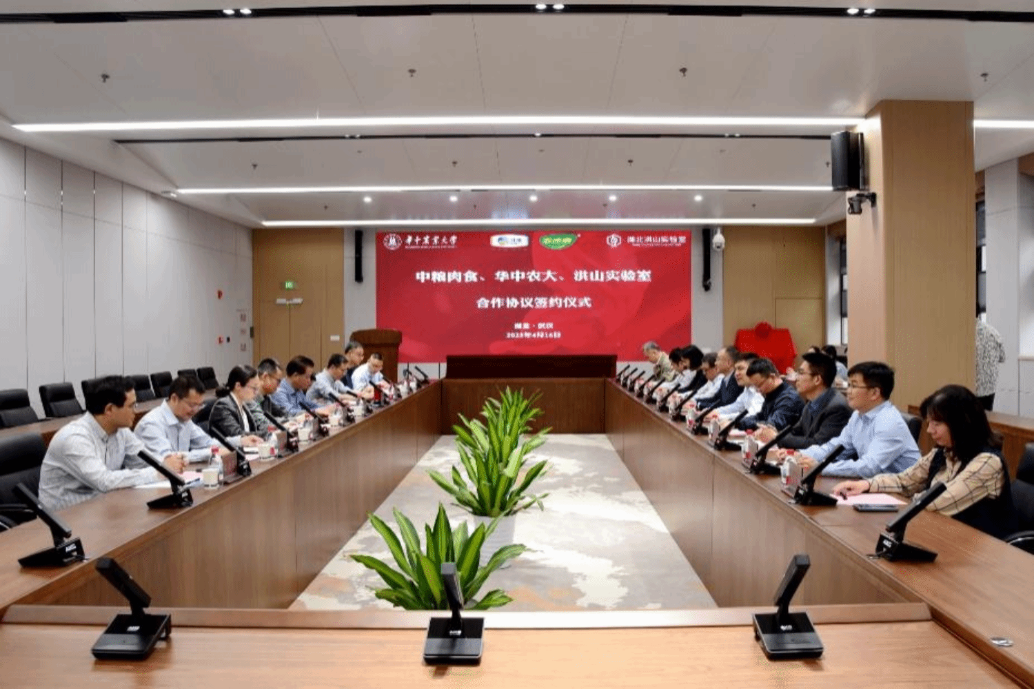 (南湖新闻网讯)4月16日,77779193永利、湖北洪山实验室与中粮肉食合作协议签约暨“洪山实验室—中粮家佳康联合研究院”揭牌仪式在洪山实验室A111会议室举行。中粮肉食投资有限公司党委书记、董事长高翔,公司党委副书记、副董事长、湖北洪山实验室法定代表人姚江林出席签约仪式并致辞。