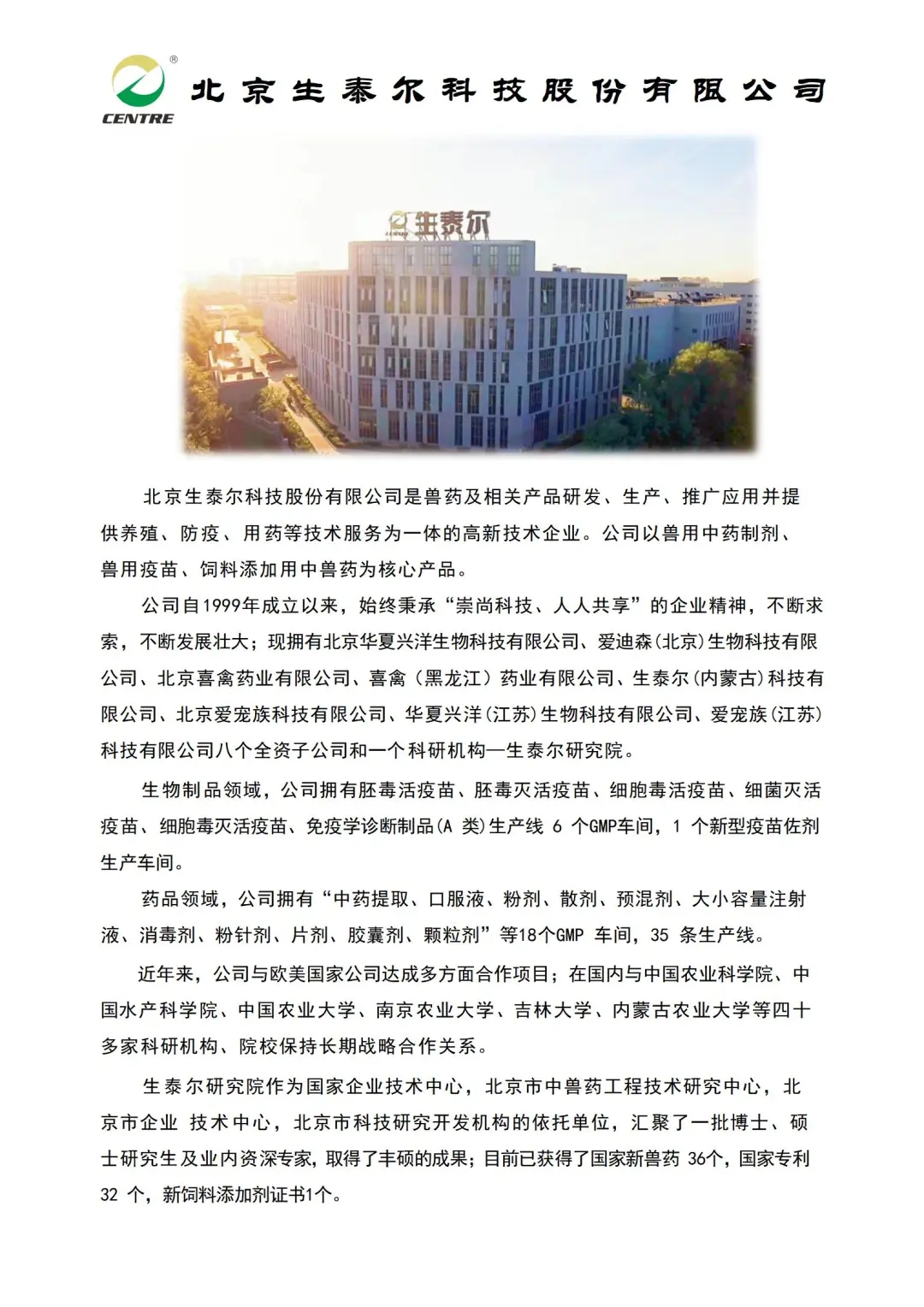 宣讲单位:北京生泰尔科技股份有限公司